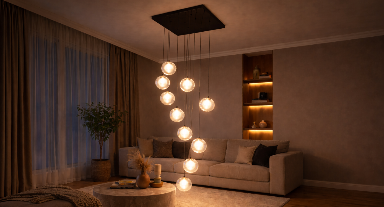 The Orbital Elegance redefines the classic double height for the modern era. By utilizing the compact G9 bulb system, this fixture achieves a pure, minimalist aesthetic where the focus remains entirely on the glowing glass spheres. As the light passes through the hand-blown globes, it creates a soft, ambient warmth that eliminates the starkness often found in large, high-ceilinged spaces. Its staggered “bubble” design provides a sense of playful luxury, making it as much a conversation piece as it is a functional light source. Adaptable and strikingly beautiful, it is the ideal choice for those looking to add a light, airy, yet commanding presence to their interior design.