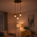 • Modern Pendant Design: Features a sleek, geometric or cylindrical silhouette suspended from a minimalist cord or rod, creating a striking focal point.