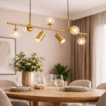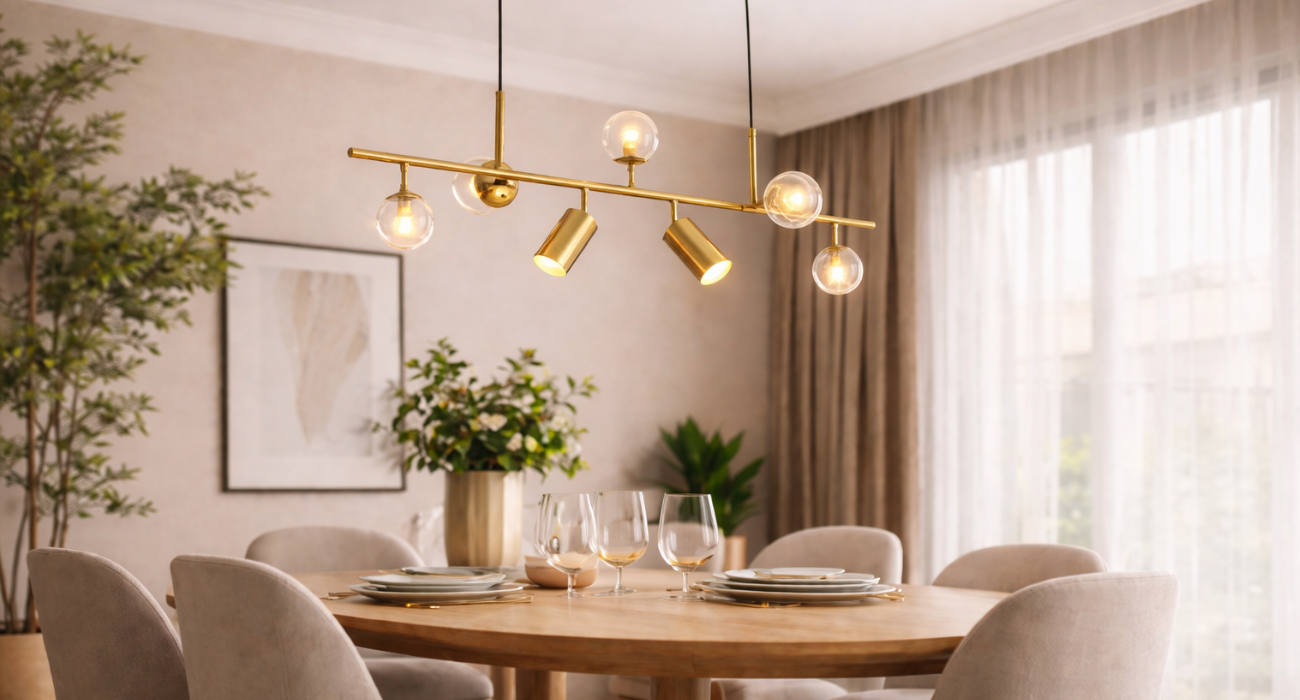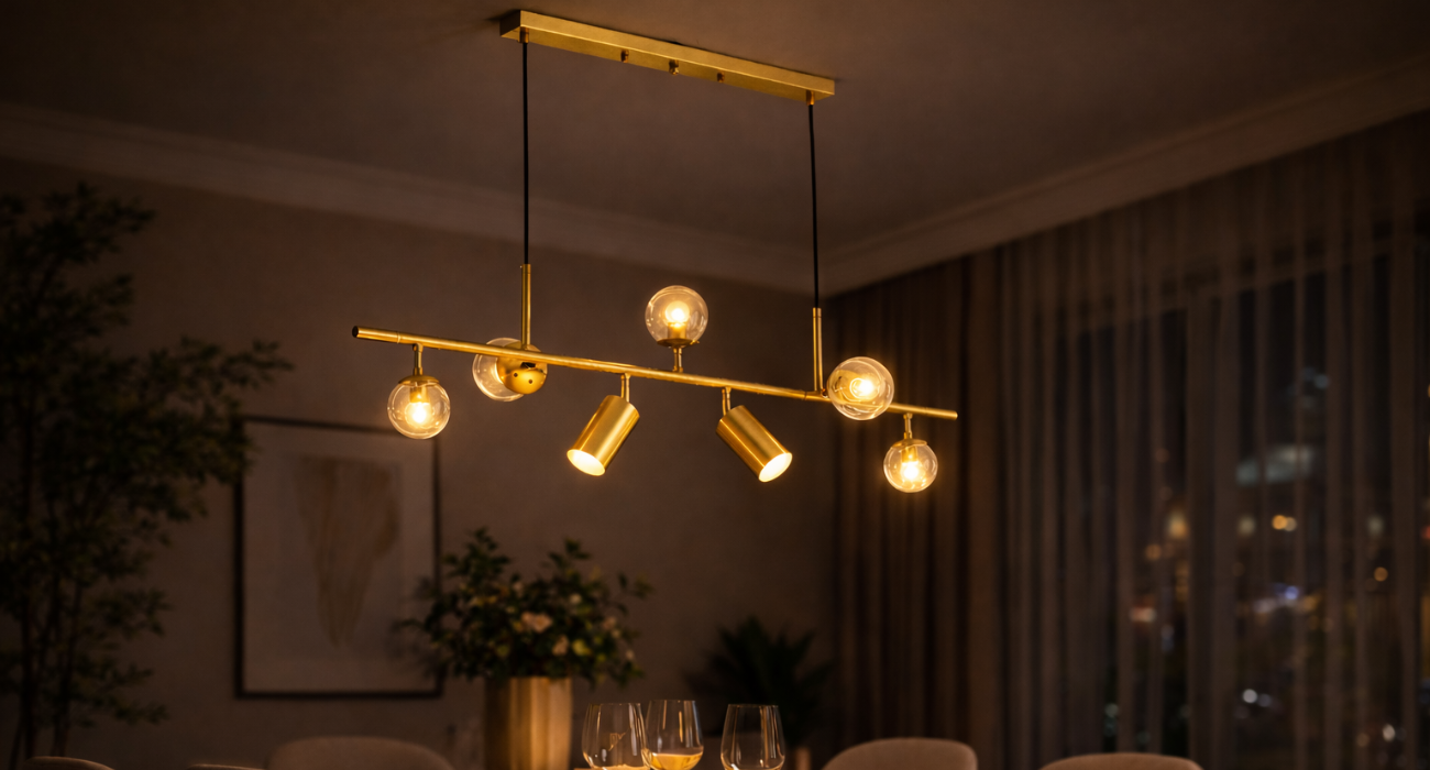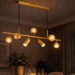 Enhance your interiors with this premium modern pendant light, designed to bring warmth, style, and sophistication to any space. Featuring a sleek golden finish and contemporary linear design, this hanging light blends beautifully with dining rooms, living areas, kitchens, and modern home décor.