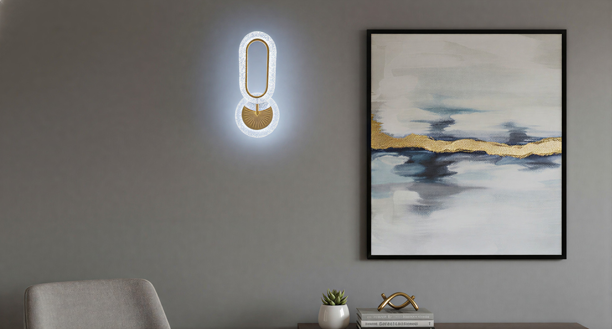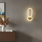 Illuminate your space with the captivating Modern Crystal LED Wall Sconce, a perfect blend of glamour and contemporary design. This eye-catching fixture features a unique, interlocking geometric shape—an elongated link combined with a circular base—each wrapped beautifully refracts the light. The polished gold-tone metallic finish inside the frame and base adds a touch of opulent contrast. Offering versatile ambiance control, this lamp features three-color changing LED technology (usually warm white, cool white, and natural white), allowing you to effortlessly switch the light tone to suit your mood or decor. Ideal for hallways, living rooms, or bedrooms, this crystal wall light transforms any wall into a statement piece, casting a brilliant and inviting glow.