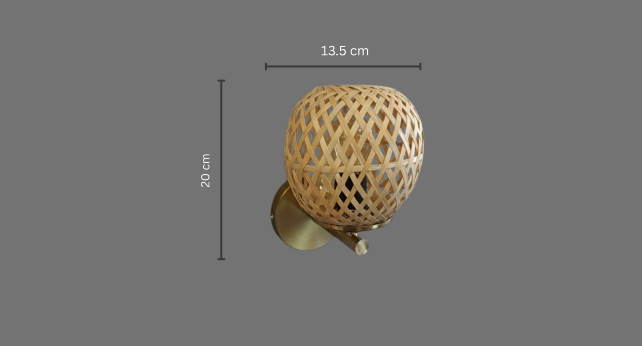 Illuminate your space with the warm, organic elegance of this stunning Woven Rattan Wall Sconce. Featuring a beautifully crafted, globe-shaped shade of natural, crisscrossing bamboo this fixture casts a soft, diffused glow that creates a cozy and inviting atmosphere. The natural material is perfectly complemented by the sleek, high-quality brass or antique gold finish of the mounting plate and arm, blending rustic texture with modern sophistication. Ideal for adding a touch of Bohemian, coastal and Japandi-style flair to a living room, hallway, or bedroom, this sconce is more than just a light source—it’s a statement piece that brings the serenity of nature indoors.